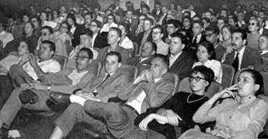 Editorial![]() Sessão em 1957 na Cinemateca do MAM: presenças de Leon Hirszman, Carlos Diegues, Walter Lima Jr., entre outros |