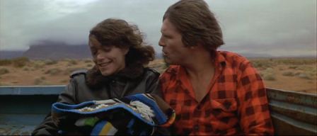 Se da obra de John Carpenter extraíssemos um negativo, como um negativo fílmico, algo que invertesse suas cores, seus movimentos e sua dramaturgia, esse negativo seria Starman. Abandonando um pouco sua escuridão característica, a apropriação do gênero aqui (road movie) é aproveitada para transmitir sua visão da humanidade. O extraterrestre, memorizando comportamentos e sentimentos, é o personagem que nos dá um ponto de vista neutro do aspecto humano e que possui um discurso lúcido enquanto se insere em uma realidade que impede o mal absoluto de se encarnar, em contraste com os outros filmes deste mesmo cineasta. O Mal, aqui, é a própria humanidade (3) “invertida”, a monstruosidade no humano, dissimulada: já eram os temas de Enigma de Outro Mundo, Halloween e seu Michael Myers, a gangue de Assalto à 13ª DP, Eles Vivem, mas nunca encenada tão frontalmente como aqui: a culpa recai sobre o ser humano, o arquiteto da caçada humana empreendida a duas pessoas inofensivas (“Welcome to Planet Earth”). Ainda assim, o olhar permanece sutil o suficiente, pois Jeff Bridges reflete menos o Bem do que um tipo de “reflexão do humano”. Quero dizer com isso que ele é ambivalente (por exemplo, na sequência em que observa Jenny furar o semáforo e a imita). Através das peripécias do casal em fuga vamos ser apresentados igualmente aos marginalizados e à juventude como fonte de esperança, portando uma riqueza humana em oposição à uniformização e rigidez dos membros do exército ou da polícia, e é com o primeiro grupo que os protagonistas conseguiram escapar. Nesse filme escondido, outro apelo à lucidez. Para além das paisagens, que Carpenter justapõe a um scope dos mais puros (o “sistema” do campo / contracampo e planos médios/gerais nunca se interrompe), montando uma espécie de western no crepuscular, ode aos despossuídos, aos seres abandonados em cafeterias imensas e vazias. Podemos notar, na cena em que o casal pega carona numa caminhonete com uma índia e seu filho, o alcance do talento de Carpenter. Atrás deles, podemos ver a imensidão das paisagens americanas de westerns clássicos. A história de Starman é aquela de um país que tem medo, onde os serviços militares percebem “o outro” como estrangeiro ou como ameaça nessa visão fascista da diferença. A criança que passa pelas mãos de Jenny Hayden e da indígena indica uma união das minorias, e a esperança de Carpenter, aqui fordianamente um porta-voz dos despossuídos, no porvir. (22, 23) O cientista especialista em manifestações extraterrestres, o incorruptível Mark Shermin (Charles Martin Smith), será a ovelha negra em oposição às forças militares e governamentais. O charuto que ele orgulhosamente acende diante da face do conselheiro do presidente faz eco a outros personagens (Snake Plissken, o outsider que dá pistas falsas aos poderosos) e ao próprio Carpenter, cowboy solitário que despreza as representações de autoridade. (24, 25)